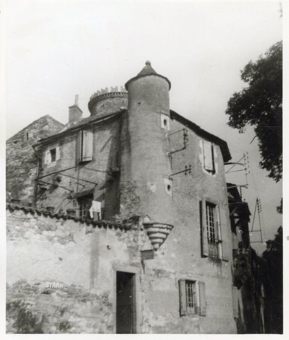 Depuis 1282, la seigneurie de Monesties dépendait des évêques (puis archevêques) d'Albi. Les constructions existantes ne sont pas antérieures au 16e siècle. A l'angle des façades sur le boulevard et sur la cour, une tourelle repose sur un encorbellement circulaire composé de cinq assises de diamètres croissants. Cette tourelle s'élève sur deux étages percés chacun d'une grande embrasure de bouche à feu ovale. La façade sur rue présente un second étage en saillie sur le premier, lui-même en encorbellement sur le rez-de-chaussée. Ces murs en saillie reposent sur des poutrelles de bois renforcées, aux extrémités et au centre, de corbeaux de pierre. Une partie du rez-de-chaussée est occupée par une boutique composée d'une porte d'entrée et de deux arcs en anse de panier. La porte en plein cintre présente deux pilastres supportant une architrave. Trois pilastres semblables à ceux de la porte encadrent les deux grandes baies.