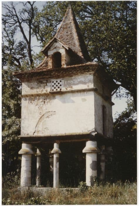 Ouvrage en briques et pierres, construit sur huit piliers de pierre. Des arcs de décharge en briques reportent le poids du pigeonnier sur les angles dont les piliers sont nettement plus robustes. L'accès se fait par une porte s'ouvrant à l'étage. La toiture est posée sur une corniche en génoise et présente un profil en pagode. Elle se termine par un épi de pierre en forme de quille. Une lucarne et une ouverture percée en domino assurent l'accès des pigeons. A l'intérieur, disposition assez rare présentant des boulins aménagés en torchis et bambous. Ce pigeonnier est représentatif du type des pigeonniers à toit pyramidal, répandu à partir de la région de Lavaur.