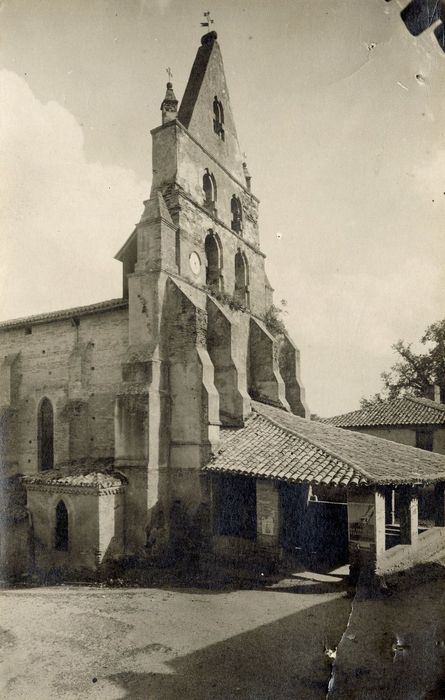 L'église du 12e siècle fut brûlée entièrement durant les guerres de Religion et démolie jusqu'aux fondements. Le cardinal Villaret de Joyeuse fit reconstruire une partie de l'édifice. L'édifice est bâti en briques. Le clocher est constitué d'un mur à cloches soutenu par des contreforts. Ce clocher pourrait dater du 14e siècle mais a été très restauré en 1721. Il est précédé d'un porche avec deux escaliers symétriques descendant au niveau du sol de l'église.