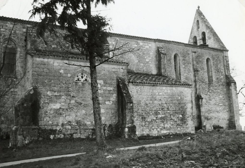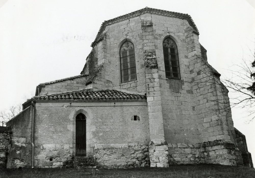 Un premier édifice existait, probablement dès le 12e siècle, qui faisait partie du diocèse de Cahors. Ruiné lors des guerres de Cent ans, il fut reconstruit vers 1500. Une nef unique de quatre travées aboutit à un choeur avec chevet à trois pans, éclairé par cinq fenêtres. Choeur et nef sont couverts de croisées d'ogives évidées. Cinq chapelles s'ouvrent sur la nef, voûtées d'ogives. Le portail et les remplages flamboyants sont néo-gothiques. Les restes du portail primitif à voussures se voient à la porte droite de la première travée. A la deuxième travée, côté droit, subsiste un enfeu en anse de panier. A la deuxième travée, l'arc de la chapelle latérale se reçoit sur des chapiteaux sculptés (animaux, scène de chasse...). Dans le choeur, remploi de divers éléments de boiseries du 17e siècle, provenant sans dout d'un retable.