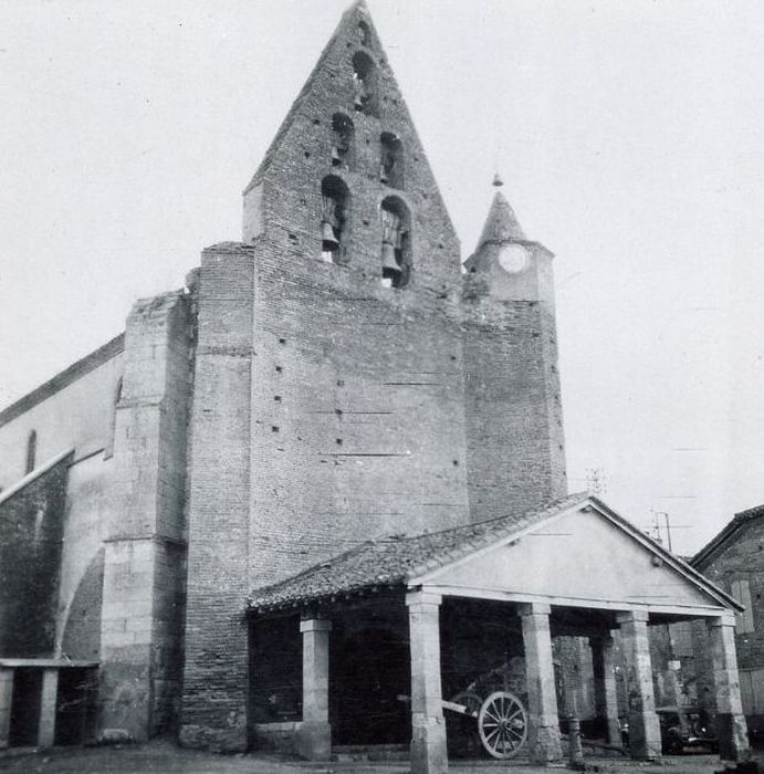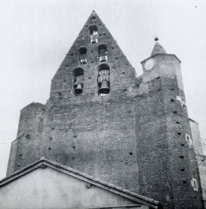 Eglise se composant d'une nef de trois travées avec quatre chapelles entre les contreforts. Un choeur à pans la complète. Un porche y donne accès. Une seule chapelle paraît dater du 13e siècle, ayant conservé sa voûte d'origine. L'église a été voûtée en briques en 1875. Les façades sont en briques. Le clocher est constitué par un mur-pignon à arcades logeant cinq cloches. L'accès se fait par un escalier placé à l'angle sud-ouest, formant tourelle.