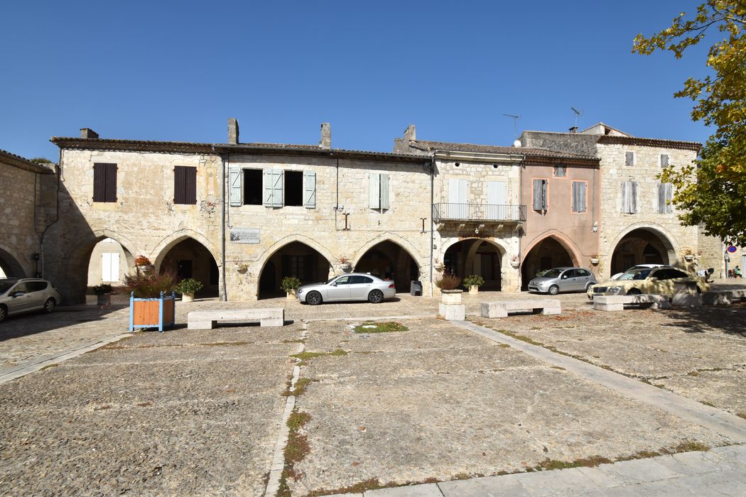 La place carrée est entourée d'un ensemble de maisons à un étage construites à diverses époques. Ordonnance d'arcades et circulation à couvert au niveau de la place. Beaucoup de ces façades ont été remaniées. L'ensemble garde son caractère historique et régional.