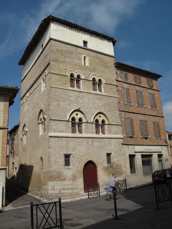 Maison du 13e siècle choisie par Viollet-le-Duc comme habitation type de cette époque dans le sud-ouest. Elle comporte trois étages et un rez-de-chaussée qui comprenait deux boutiques ; chaque étage comporte une seule grande pièce avec cheminée monumentale. Les planchers anciens subsistent avec leurs solives sur lesquelles se voient des traces de la décoration peinte réalisée au 16e siècle. Les étages sont desservis par un escalier à l'italienne du 16e ou du 17e siècle. La construction est entièrement en briques, sauf les bandeaux, les colonnettes des baies et les sommiers des arcs. Au 15e siècle, des baies à meneaux et croisillons ont remplacé les anciennes fenêtres géminées au premier étage. La façade est couronnée d'un encorbellement de tuiles à canal ("génoise").