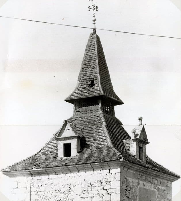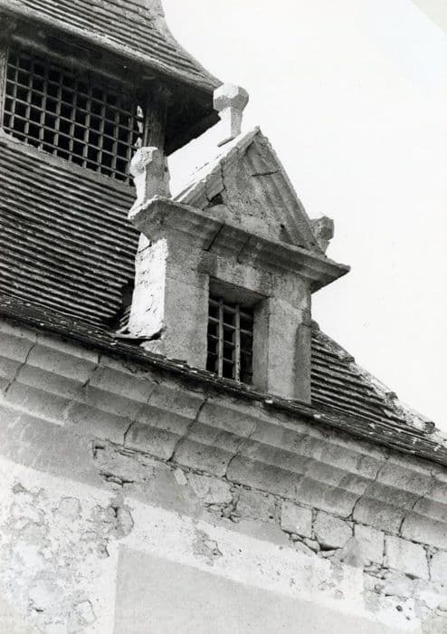 Les lucarnes en pierre à fronton mouluré surmonté de petits pinacles, attestent la fin de la Renaissance et la corniche moulurée le début de l'époque classique. La couverture principale en tuiles plates est représentative du mode de couvrement des pigeonniers ou des tourelles dans le département, ainsi que le campanile ou flèche terminant le couvrement. Entre ces deux éléments de couverture se trouve l'entrée des pigeons.