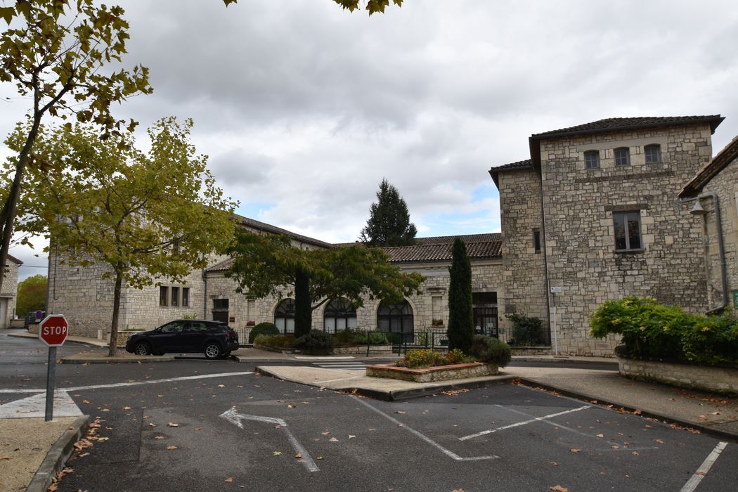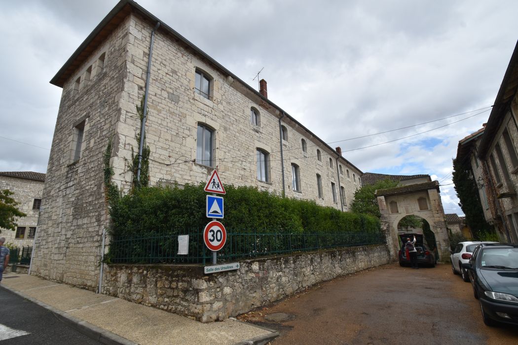 Le marquis Henri de Montpezat avait laissé une somme à dépenser en bonnes oeuvres au moment de son décès. Avec l'autorisation de l'évêque de Cahors, son épouse fonda un monastère d'Ursulines afin de donner aux jeunes filles du pays une éducation chrétienne et l'instruction. En 1796, le monastère fut évacué et vendu en partie. La plupart des locaux furent affectés aux services communaux. La façade principale donnant sur la place masque le cloître. Trois galeries légèrement en contrebas par rapport au niveau du sol, sont largement ouvertes sur l'espace intérieur par une série d'arcades en plein cintre prenant appui sur une murette. Les galeries sud, est et ouest sont couvertes d'un toit en terrasse. Les bâtiments conventuels s'ordonnent autour d'elles. La galerie sud du cloître se poursuit en couloir voûté et donne accès à un escalier menant à la chapelle et aux étages.