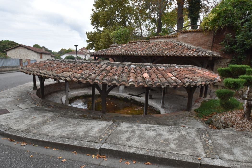 Le lavoir est établi au sortir d'une source abritée par un portique à trois arcades, en charpente de bois couvert de tuiles canal. L'eau sourd d'un conduit émanant d'un réceptacle couvert par un portique de pierres et briques, encadré de deux pilastres de pierre et surmonté d'un entablement de briques. L'eau aboutit à un lavoir ovale se développant en galerie couverte sur charpente de bois, entourant un bassin de pierre.