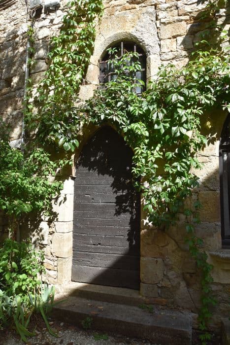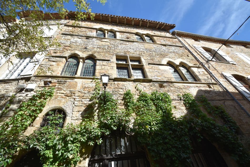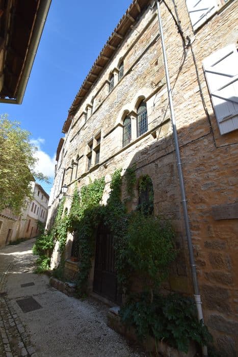 Maison construite en moellon calcaire équarri, constituée d'un corps unique rectangulaire, à deux étages. Adossée à la première enceinte de la ville, le fond se compose de la roche brute servant de soubassement à l'enceinte. A l'arrière, un espace devait contenir un escalier en bois assurant la liaison entre le premier et le second étage. L'unique élévation sur la rue est composée de trois niveaux de baies, limités par des cordons chanfreinés régnant sur toute la façade au niveau des appuis des fenêtres. A l'intérieur, le rez-de-chaussée conserve quelques équipements anciens : le départ de l'escalier droit en pierre d'origine, deux grosses colonnes portant la poutre maîtresse du plafond, une citerne creusée dans le roc entre les piliers pour recueillir l'eau provenant des ruissellements de la roche. Les étages servaient à l'habitation. Cet édifice est représentatif des maisons qui devaient composer la ville à la fin du 13e ou au début du 14e siècle.