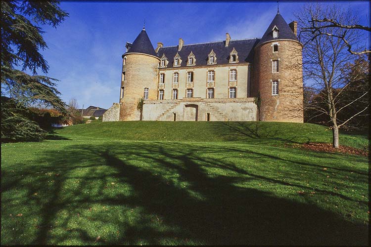 Ce château a été édifié au 15e siècle pour la famille de Boucard, puis agrandi après 1619 pour Claude de Faucon. Au 15e siècle, il consistait en un corps de bâtiment flanqué de deux tours demi-circulaires aux angles et se prolongeant en équerre jusqu'à un donjon carré placé à l'extrémité de la courtine ouest. L'entrée se faisait par cette courtine. Tous les bâtiments sont en briques. Au 17e siècle, le corps de bâtiment sud fut aménagé en logements avec façades dans le goût de l'époque, et deux pavillons furent construits au nord, celui du nord-ouest étant relié à la tour sud-est par une galerie. Certaines parties ont été restructurées au 19e siècle.
