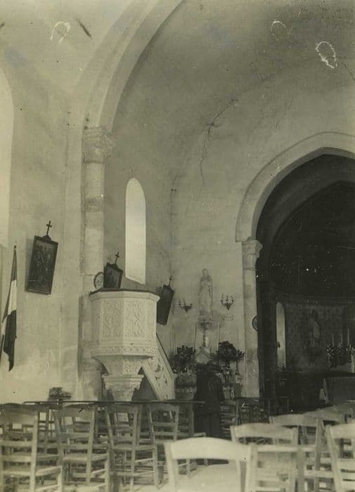 Edifice composé d'une nef et d'un choeur terminé par une abside circulaire. Nef et choeur sont voûtés en berceau brisé ; l'abside en cul de four. Tous les chapiteaux sont ornés de feuillages et de marques. La façade ouest est surmontée par un clocher moderne.