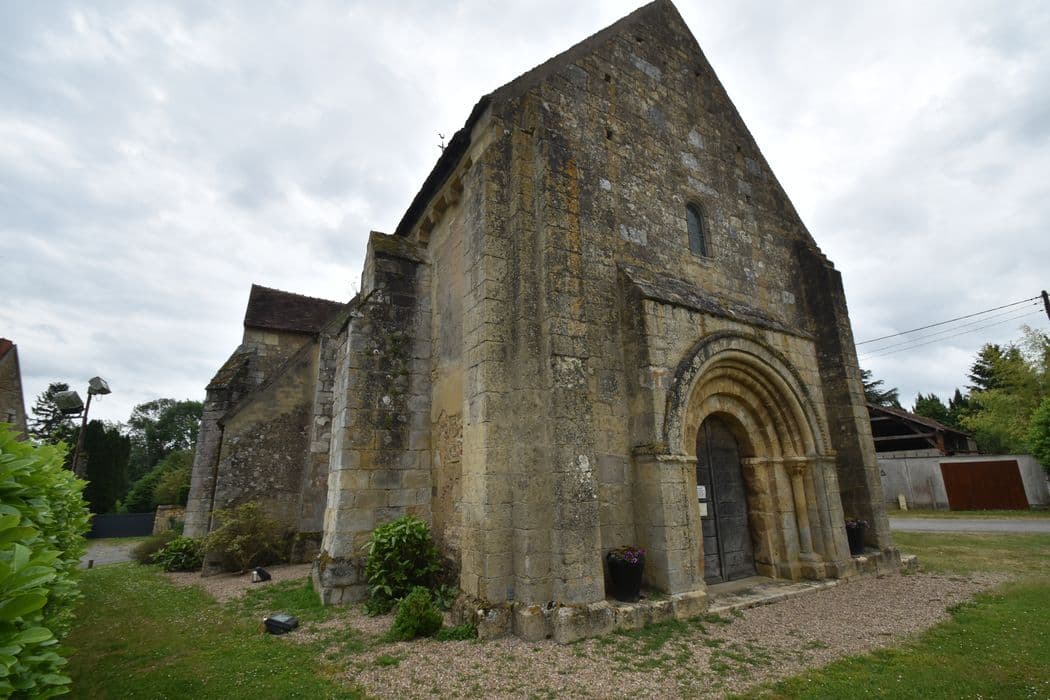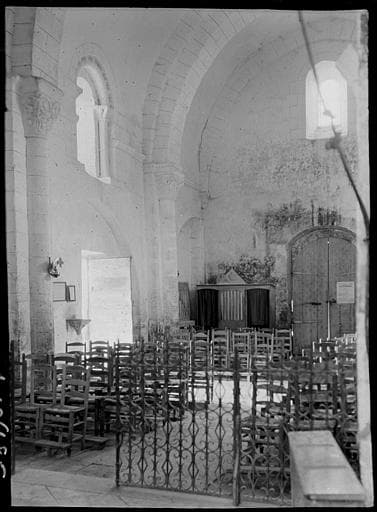 L'église se compose d'une nef de trois travées, sans bas-côtés ; d'un double transept avec croisée centrale sur laquelle repose le clocher ; de deux absidioles de transepts et d'un sanctuaire sur plan demi-circulaire, précédé d'une courte travée droite formant choeur. La nef est couverte par un berceau ogival avec doubleaux de même forme. Le reste de l'édifice est voûté en berceau plein cintre, à l'exception du transept nord dont la voûte d'ogive sur nervures a été refaite au 15e siècle, et des absidioles et de l'absides voûtées en cul de four. Si l'ensemble est daté du 12e siècle, l'édifice subit toutefois des transformations au 15e siècle : reconstruction des contreforts de la nef en les renforçant ; agrandissement des fenêtres des absides ; réfection de la voûte du transept nord ; établissement du tombeau dans le mur nord de ce transept. La fenêtre de l'abside centrale conserve un important reste de vitrail du 15e siècle.
