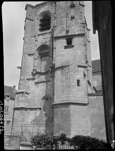 Bon exemple d'hôtel de ville-beffroi élevé en 1509. A l'origine, le beffroi était isolé. Une église moderne lui a été adossée. Le mur du beffroi est percé d'une ouverture et un escalier a été établi pour accéder à une pièce qui forme une dépendance de l'église et qui est ménagée dans la voûte de l'ancienne salle du rez-de-chaussée, séparée par un plancher moderne au niveau du cintre de la voûte. L'escalier primitif qui desservait les divers étages de la tour est placé sur l'angle de droite opposé à l'entrée. Au premier étage se trouve une grande pièce carrée qui était voûtée comme celle du rez-de-chaussée, mais dont la voûte a été détruite. C'était la salle des échevins ou des délibérations municipales. Elle contient une cheminée monumentale à moulurations, éventrée au début du 20e siècle lors de la pause de l'horloge.