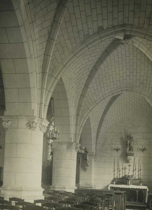 L'église se compose d'une nef de quatre travées avec bas-côtés, terminée par un chevet carré. La nef est couverte d'une voûte en arc brisé, enduite de plâtre. Les entraits engueulés et les poinçons moulurés de la charpente sont apparents à l'intérieur. Les bas-côtés sont voûtés sur croisées d'ogives. Les arcs doubleaux et les nervures prennent naissance le long des murs, sur des culots ornés de feuillage et, vers l'intérieur, sur de robustes piliers cylindriques couronnés par un tailloir dont les angles sont amortis par des motifs sculptés.