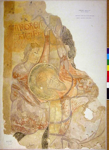 L'église se compose d'une nef couverte par un berceau lambrissé, flanquée de deux bas-côtés du 15e siècle, voûtés sur croisée d'ogives, d'un choeur de la même époque et d'une abside semi-circulaire remontant au 12e siècle, ainsi que le clocher. L'abside romane conserve des fresques du 12e représentant, dans la voûte, le Christ en gloire avec les quatre Evangélistes accompagnés, sur l'arc de tête, de deux séraphins. Sur les murs de l'hémicycle se déroulent des scènes de la vie de Saint-André. Dans l'ébrasement des fenêtres sont peintes des figures.