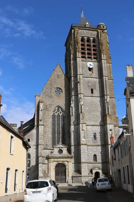 L'église se compose d'une nef flanquée de deux bas-côtés, d'un transept et d'une abside en cul de four.Sur la première travée du bas-côté sud s'élève un clocher, haute tour carrée ornée de pinacles sculptés. Sur la croisée du transept se trouve une tour, partie basse d'un clocher central primitif. La base carrée passe au plan octogonal par des pans coupés. La partie la plus ancienne est le choeur et le transept qui peuvent être attribués au 12e siècle. L'abside semi-circulaire avec contreforts est voûtée en cul de four. La nef date du 15e siècle. Au-dessus des bas-côtés subsistent les arcs boutants contrebuttant la voûte primitive en pierre. Le portail principal est une adjonction récente.