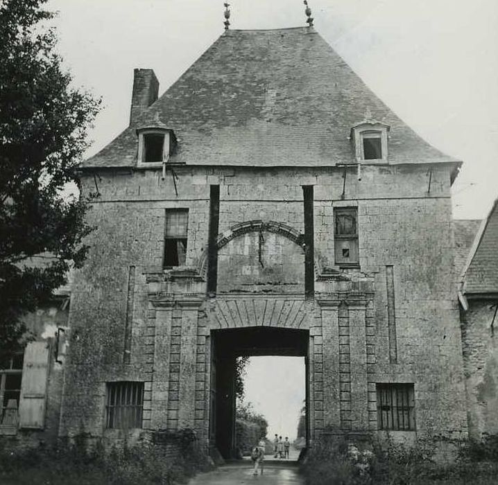 Le château, construction du 17e siècle, comporte un corps de bâtiment principal avec pavillon central, dont l'entrée est protégée par une douve sèche, et flanqué aux extrémités de tourelles bâties sur plan carré, comportant un avant-corps où est logé l'escalier. La cour est entourée de murs et limitée au sud par des douves sèches s'arrêtant aux extrémités est et ouest sur des tourelles semblables à celles du bâtiment principal.