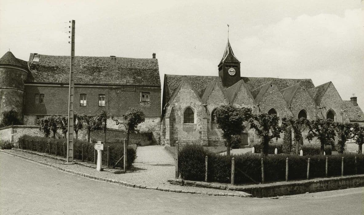 Le prieuré de Néron, dépendant de l'abbaye de Thiron, s'est formé aux 12e et 13e siècles. L'église n'est pas attestée au-delà du milieu du 13e siècle. Elle se compose d'une nef avec choeur et sanctuaire, cette partie formant l'édifice d'origine. Vers 1330, une nef latérale fut ajoutée. Le clocher, détruit par la foudre en 1701, a été reconstruit en 1723. L'édifice est entouré par le jardin du presbytère, une cour dépendant de la ferme et les bâtiments de celle-ci. Cette ferme a probablement été construite au 17e siècle. Elle se compose de deux bâtiments de hauteur différente, reliés en leur angle par une tourelle. Les façades sur rue sont en pierres et briques ; celles sur cour sont en maçonnerie au rez-de-chaussée et en colombages sur les étages. Ces bâtiments constituèrent les communs du prieuré.