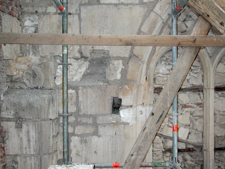 L'abside et les transepts remontent au 15e siècle. La nef, dont deux travées sont du 16e siècle, n'a jamais été achevée. Le transept sud offre la particularité d'avoir une galerie de ronde avec mâchicoulis et créneaux. Au milieu du transept s'élève une flèche reposant sur une base octogonale. A l'intérieur, le choeur est entouré par une grille en fer forgé. Les fenêtres à meneaux sont ornées de vitraux de 15e et 16e siècles.