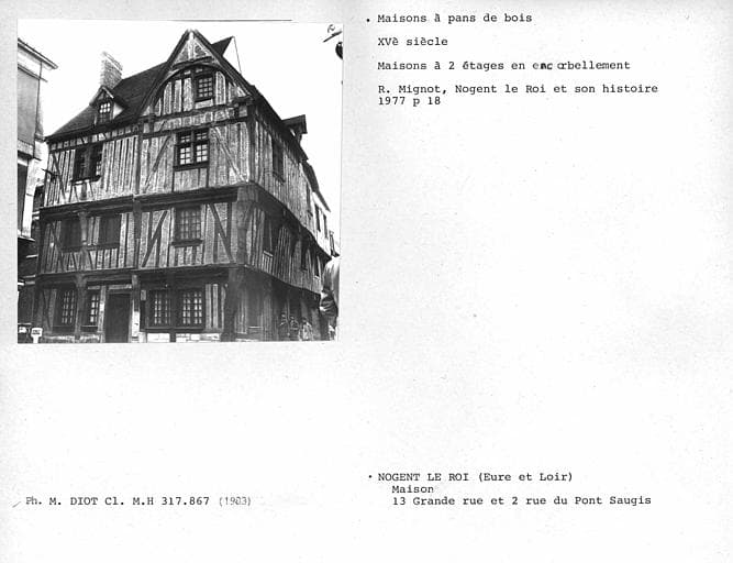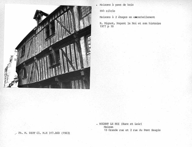 Centre-Val de Loire ; Eure-et-Loir (28) ; Nogent-le-Roi ; 13 rue du Général-de-Gaulle ; anciennement Grande-Rue ; 2 rue du Pont-Saugis