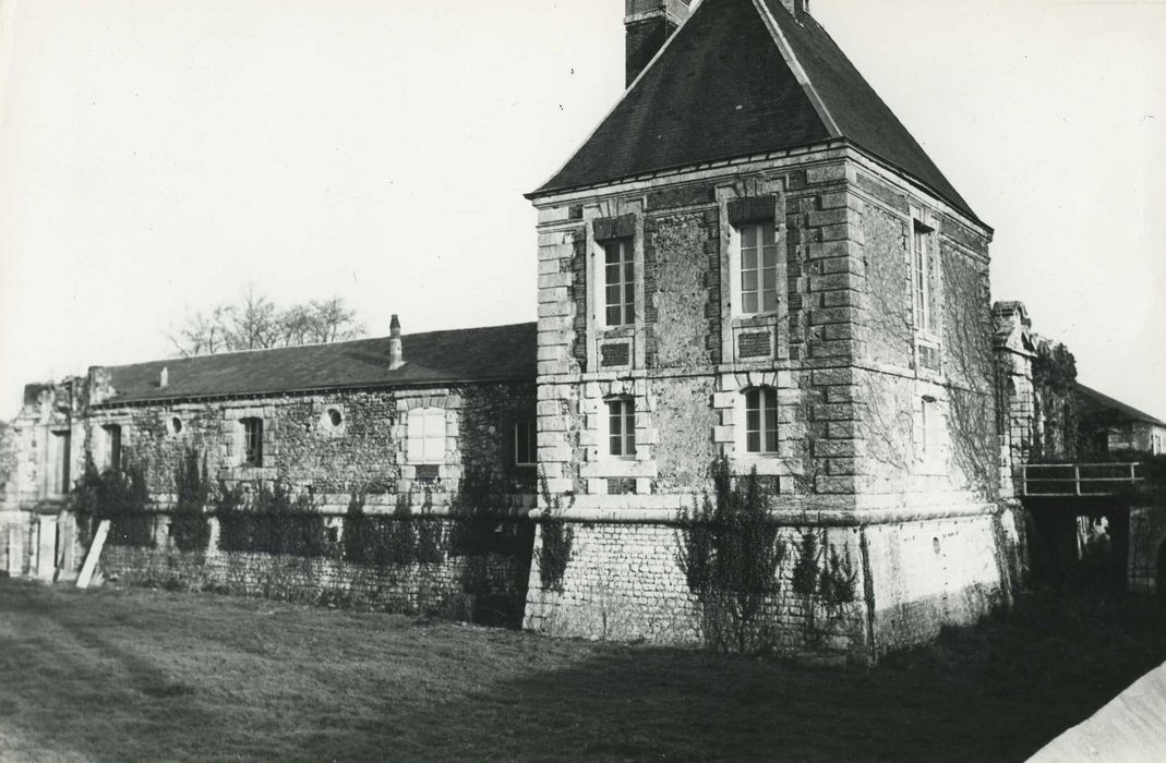 L'ensemble agricole date des 15e et 16e siècles. Le pavillon d'angle sud-ouest est quant à lui du 17e siècle. Du château, dont le corps de logis principal a disparu suite à sa vente comme bien national, subsistent de belles parties. Le pont qui surplombe les douves, mène à la cour intérieure en passant sous une porte monumentale en plein cintre surmontée d'un fronton triangulaire. De part et d'autre s'ouvrent trois baies en plein cintre. Dans le prolongement de celles-ci se font face symétriquement deux pavillons carrés qui font saillie. Toute la façade nord, qui devait correspondre au corps de logis, a disparu. Deux bâtiments devaient relier les pavillons au corps de logis. L'ensemble agricole se compose de différents bâtiments du 16e siècle et d'un corps en logis du 15e siècle qui ferment une cour intérieure, fermée au nord et au sud par deux portes fortifiées. Le corps de logis est flanqué, au nord, d'une tourelle d'escalier. Cet ensemble est le noyau primitif d'habitation à côté duquel fut construit le château du 17e siècle.