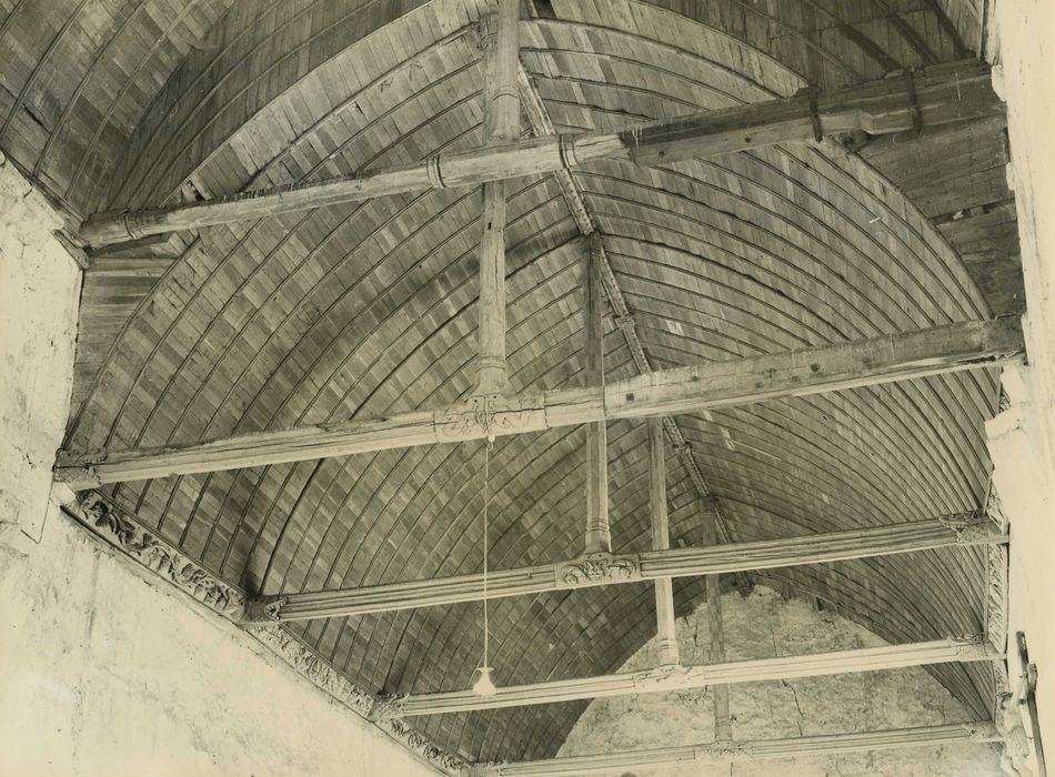 Edifice sans bas-côté ni déambulatoire, terminé par un choeur à trois pans. La tour carrée du clocher est accolée à la façade sud. La partie du 16e siècle comprend le choeur et les deux travées qui le précèdent. La partie du 12e siècle comprend la nef et la tour du clocher. L'intérieur est couvert d'une voûte de bois du plus grand intérêt. Une voûte de pierre avait été prévue sur la partie du 16e siècle, comme en témoignent les supports engagés et les amorces de nervures. Elle a été remplacée par une voûte de bois dont les entraits sont placés plus haut que la nef. La charpente de la nef est richement décorée de motifs végétaux, d'animaux fabuleux, de scènes animées et de médaillons. Des traces de polychromie sont visibles en plusieurs endroits.