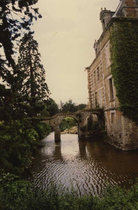 Façades et toitures du château ; boiseries et cheminées du salon du 18e siècle ; escalier en bois à balustres du 17e siècle ; façades et toitures des communs ; douves et terre-plein avec ses deux ponts ; grille d'honneur en fer forgé ; colombier (cad. A 144, 145, 154, 222) : inscription par arrêté du 2 mars 1992