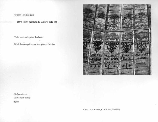 © Monuments historiques, 1992. Cette notice reprend intégralement les termes de l’arrêté de protection au titre des Monuments historiques. Elle répond à l’obligation réglementaire du ministère de la Culture d’établir la liste générale des immeubles protégés (art. R. 621-80 du Code du patrimoine). Elle est donc opposable et fait foi juridiquement. Aucune copie numérique ou papier ne sera fournie par courrier ni courriel. Le dossier de protection complet et l’arrêté sont consultables uniquement sur place, dans la salle de lecture de la Médiathèque du patrimoine et de la photographie (MPP), à Charenton-le-Pont (Val-de-Marne).