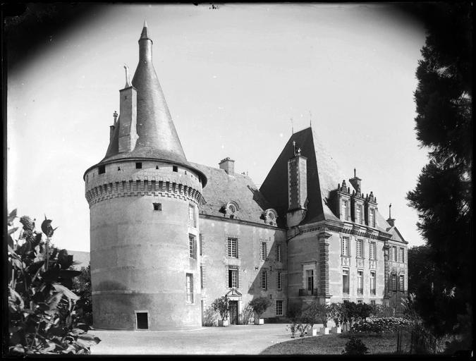 Place fortifiée au Moyen-Age, gravement endommagé pendant la guerre de Cent ans, le château fut remis en état une première fois en 1422. A la fin du 16e siècle, il est à nouveau restauré et transformé. En 1629, construction d'un bâtiment entre le donjon carré et la tour ronde. Au début du 17e siècle, sont élevés sur la gauche de la façade du château, un pavillon et une aile basse. En 1714, construction d'un pavillon à côté du donjon carré, à l'opposé de la tour ronde. Lors de la restauration de 1936, une galerie basse fut construite pour relier le château à l'aile basse du 17e siècle. La demeure est entourée d'un parc