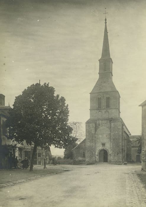 L'église est construite en granit et remonte, pour son ensemble, au 13e siècle. Elle comprenait primitivement une longue nef unique, un choeur à chevet plat et un porche très vaste, ajouré sur trois faces, précédant un petit portail à colonnettes. Les chapiteaux du choeur sont ornés de feuillages. Les voûtes de la nef ont été refaites au 14e siècle. Le porche s'orne d'un bas-relief du 16e siècle représentant Saint-Jean tenant un calice, la Vierge tenant l'Enfant, et un autre saint, sous trois dais à fleurons et pinacles. Au-dessus du porche, le clocher est formé de deux étages d'arcatures, le second étant ouvert par quatre fenêtres géminées. Du côté nord, se trouve une chapelle seigneuriale. Au 17e siècle, quatre travées de bas-côtés ont été construites à la suite de cette chapelle. A la fin du 15e siècle, une chapelle seigneuriale fut construite du côté sud.