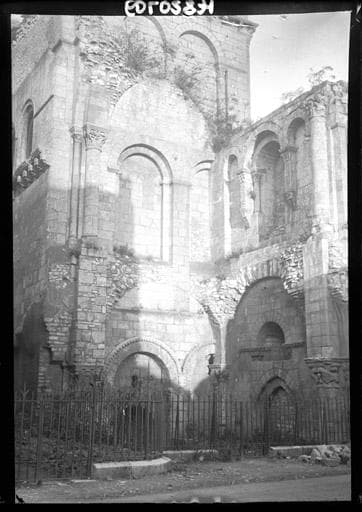 Les bâtiments principaux comprenaient l'abbatiale, le cloître et les bâtiments l'entourant (salle du chapitre, réfectoire...). Toutes ces parties furent endommagées à partir de 1840, démolies par le propriétaire. Le clocher sud-ouest de l'abbatiale seul est intact. Des autres parties ne subsistent que des murs et des éléments d'architecture. L'abbaye fut fondée en 917. Plusieurs fois reconstruite, elle a acquis sa forme définitive au début du 12e siècle. L'église abbatiale fut consacrée en 1107. Elle se composait à l'origine d'un narthex avec façade à deux clochers ; d'une nef avec façade occidentale à deux clochers ; d'un transept avec tour centrale à la croisée ; d'un choeur avec abside circulaire, déambulatoire et chapelles absidiales ; de deux tours placées à l'angle du transept et du choeur. Diverses parties furent refaites du 13e au 14e siècle. Abandonnée au 17e siècle, l'abbaye fut ensuite vendue à un entrepreneur de travaux publics sous Louis Philippe. La portion conservée la plus considérable des cloîtres et des bâtiments claustraux comporte une travée de la salle capitulaire, celle d'une autre salle, les murs d'une enceinte (sans doute le réfectoire) , et un bâtiment intact voûté d'ogives qui servit sans doute de chauffoir aux religieux. Des chapiteaux sculptés ont été conservés dans le transept.