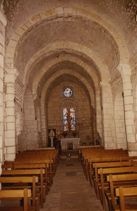 L'église et le château auraient formé autrefois un prieuré qui dépendait de l'abbaye Saint-Cyprien de Poitiers. L'église aurait été édifiée au début du 12e siècle, selon un plan cruciforme. De ce premier édifice subsistent deux travées voûtées en berceau, et la tour-clocher à la croisée de l'ancien transept. Une seconde campagne de construction, sans doute à la fin du 12e siècle, ajouta à l'édifice trois travées en berceau brisé et formant un choeur à chevet plat. Au 15e siècle, l'église fut agrandie d'une chapelle. Fin 15e début 16e siècle, ajout d'une chapelle côté nord. Vers 1657, ajout au sud d'un collatéral et, au nord, d'un vestibule donnant accès à la chapelle de la Vierge. L'abbaye de Saint-Cyprien ne paraît pas avoir maintenu son prieuré au-delà du début du 17e siècle. L'ex prieuré est devenu château et l'église devint paroissiale.