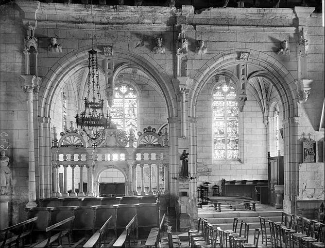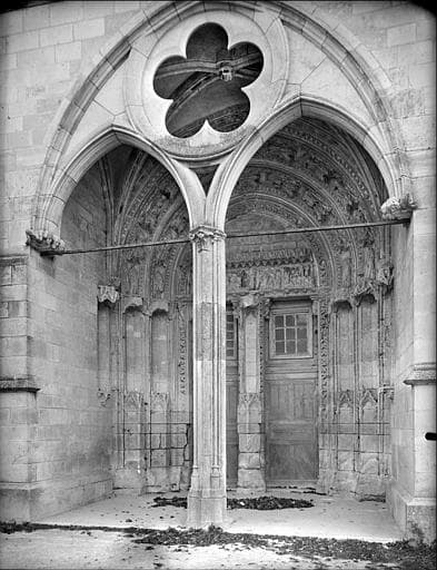 Eglise collégiale fondée par Alix de Brabant, consacrée en 1339. L'entrée principale est composée de deux portes accouplées dont l'accès se fait par un porche décoré de sculptures. Pilastres historiés. Des figures fantastiques accompagnent les supports de grandes niches vides de leurs statues. Consoles saillantes superposées de chaque côté de l'ogive principale, et recouvertes de baldaquins dentelés, dans lesquels sont enchassées de nombreuses statuettes. Les murs du choeur gardent des traces de peinture. Quelques traces de peinture se trouvent également sur le reste des murs (tétramorphe). Le clocher qui surmonte le portail se divisait autrefois en trois aiguilles à huit pans placées sur l'axe de la façade. Vers 1820, La flèche centrale a été remplacée par une charpente en bois et les deux pointes latérales ont été supprimées.