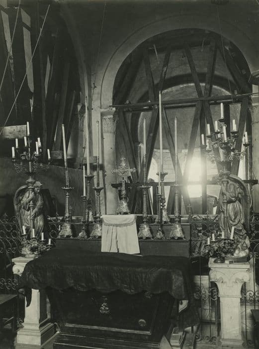 © Monuments historiques, 1992. Cette notice reprend intégralement les termes de l’arrêté de protection au titre des Monuments historiques. Elle répond à l’obligation réglementaire du ministère de la Culture d’établir la liste générale des immeubles protégés (art. R. 621-80 du Code du patrimoine). Elle est donc opposable et fait foi juridiquement. Aucune copie numérique ou papier ne sera fournie par courrier ni courriel. Le dossier de protection complet et l’arrêté sont consultables uniquement sur place, dans la salle de lecture de la Médiathèque du patrimoine et de la photographie (MPP), à Charenton-le-Pont (Val-de-Marne).
