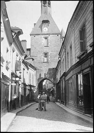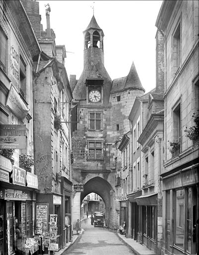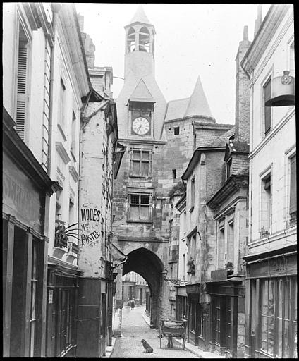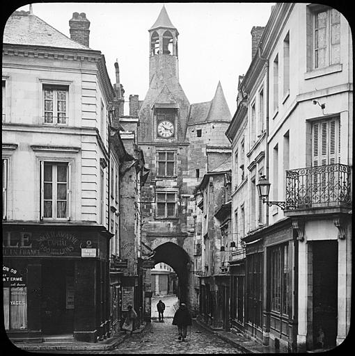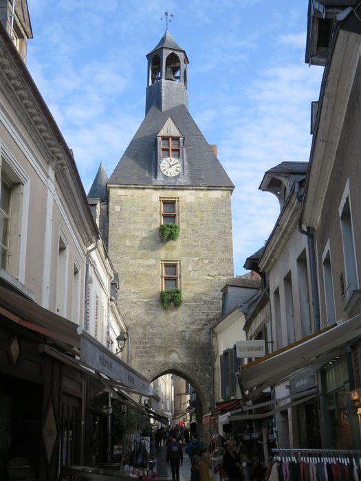 Tour édifiée au 15e siècle sur une ancienne porte de ville bâtie plus tôt. Les travaux, commencés en 1495, se sont achevés vers 1500. Au rez-de-chaussée se trouve la voûte du 13e siècle en berceau brisé, sous laquelle passe la rue. Au-dessus s'élèvent deux étages carrés, puis un comble à quatre pans qui se termine par un campanile hexagonal. Du côté de la ville, de grandes fenêtres à meneaux éclairent ces étages dont l'accès se fait par un escalier en tourelle.