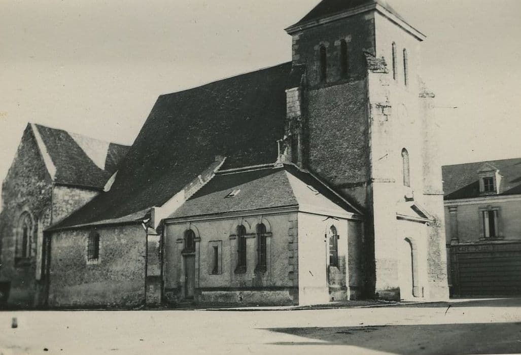 Un clocher du 16e siècle, mais dont le beffroi est moderne, flanque à l'ouest et masque l'ancienne façade d'une nef qui a pu être construite au 12e siècle, et qui a été restaurée et plafonnée. Cette nef aboutit à une travée de choeur carrée qui fut voûtée sur croisée d'ogives, et à une abside semi circulaire. La travée de choeur est reliée au nord à une chapelle du 16e siècle, précédée d'un collatéral relié à la nef et prolongé vers l'ouest au 19e siècle.