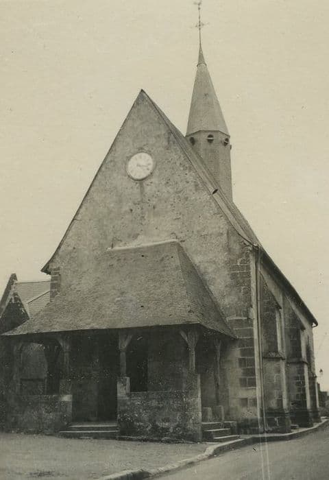 La façade est précédée d'un porche en charpente. Le mur sud de la nef a été refait en partie au 13e siècle, en même temps que le mur du chevet plat. Ces murs et les pignons furent surélevés en 1746. Une ancienne porte du 16e siècle s'aperçoit au sud. Le collatéral ajouté au nord de la nef est moderne.