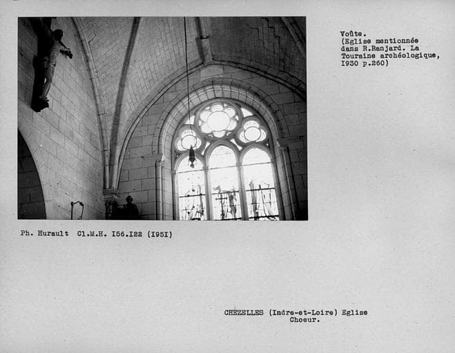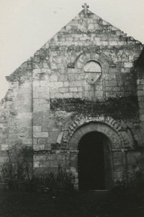 Edifice élevé sur le plan de la croix latine, avec nef, transept et choeur. Le mur nord de la nef est le vestige d'une église du 11e siècle donnée à l'abbaye de Beaumont. Le mur sud fut remplacé au 16e siècle par trois arcades qui devaient relier la nef à un collatéral resté à l'état de projet. La façade ouest fut refaite au 12e siècle, avec une porte cintrée à deux rouleaux, sans tympan. Le carré du transept date également du 12e siècle, limité par quatre arcades cintrées, et sousjacent à un clocher dont il ne reste plus que le soubassement. Le croisillon nord est constitué par une chapelle du 15e siècle, voûtée d'ogives prismatiques. Le croisillon sud a été construit au 16e siècle. Le choeur rectangulaire est angevin.