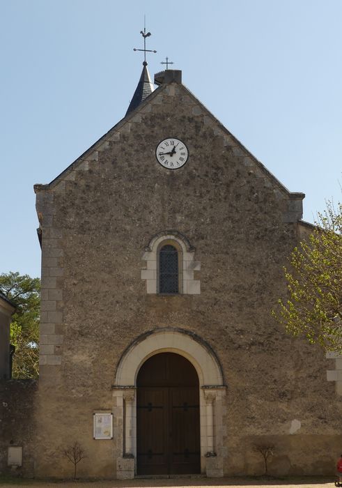 D'après la tradition, l'église primitive fut fondée par Saint-Martin à la fin du 4e siècle. Elle fut reconstruite au 10e siècle. Au 12e siècle, l'abside à cinq pans fut remplacée par une travée supportant un clocher. Le choeur a été reconstruit au 18e siècle. Un collatéral méridional fut ajouté à la nef au 19e siècle. Le mur nord de la nef est un vestige de l'église du 10e siècle. Le clocher octogonal mais fut arasé ou inachevé. Dans la nef, sur le parement du mur nord, subsistent des vestiges de peintures murales du 12e siècle.