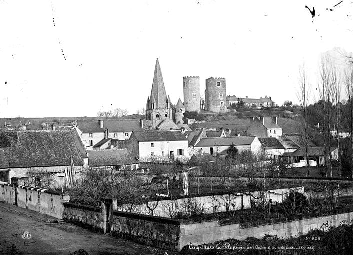 Le premier seigneur connu vivait en 1050. A la suite de l'exécution du propriétaire, Henri de Ruzé d'Effiat, grand Ecuyer et favori du Roi, en 1642, la forteresse fut rasée sur l'ordre de Richelieu. Le château comprend actuellement le logis des gardes, du 15e siècle, dont les façades ont été modifiées aux 18e et 19e siècles, qui se développe entre deux tours rondes, dont celle du nord est accompagnée d'une tour d'escalier. La forteresse est entourée de douves refaites au 16e siècle. Le pont-levis a été remplacé par un pont dormant à trois arches. Des quatre tours reliées par des bâtiments ou des courtines, subsistent la tour Est, la tour sud du 13e siècle, et la base de la tour nord, donjon de la fin du 12e siècle. Les étages supérieurs ont été détruits. Un crénelage moderne fantaisiste couronne les tours. Un ouvrage avancé, dit l'Eperon, de plan triangulaire, s'étend au sud-est de la forteresse. L'angle saillant est occupé par une échauguette. Il fut construit ou remanié au 16e siècle, en même temps que les douves. A l'angle correspondant de la muraille supérieure des douves, se dresse une tour cylindrique datant du 15e siècle qui contenait une vis en pierre qui permettait aux seigneurs de descendre du château au prieuré contigü à l'église.