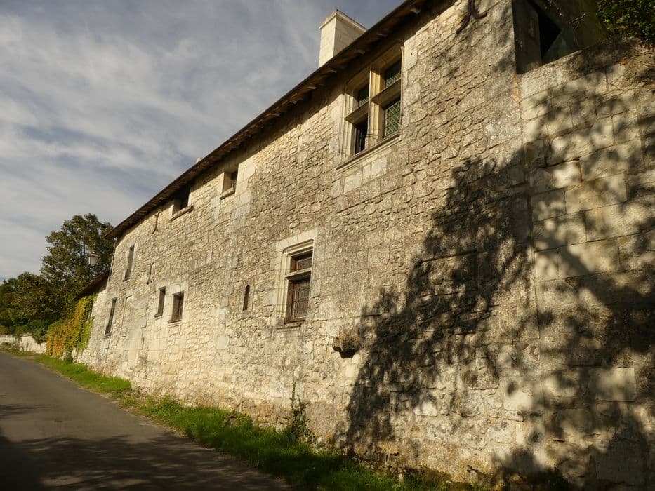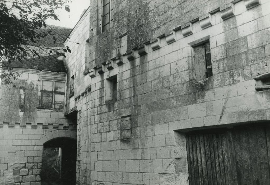 Maison située sur une ancienne voie qui traversait le bourg du nord au sud. La partie en retour du bâtiment encadrait la porte du village. Une longue façade à l'est présentant un premier étage légèrement en encorbellement, et un bâtiment en équerre sont éclairés de fenêtres à croisées de pierre. Les pierres d'entablement sont sculptées. Au nord, une échauguette ronde est posée en cul de lampe et percée de meurtrières.
