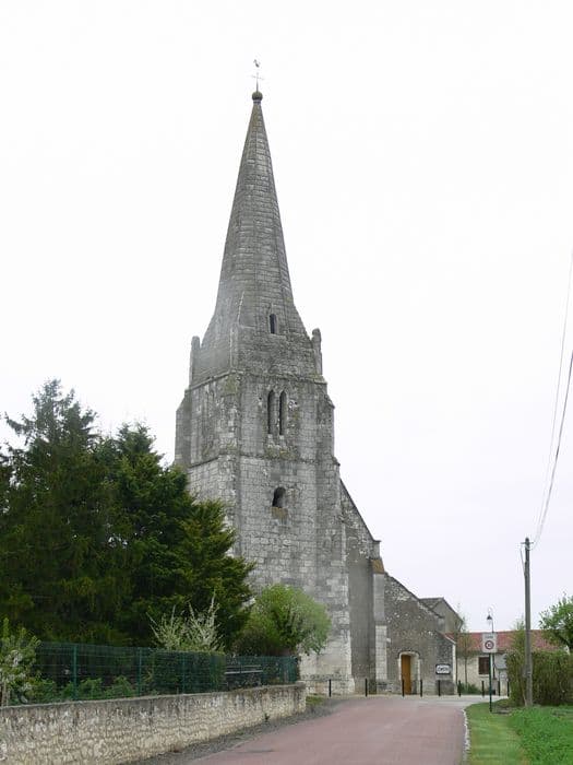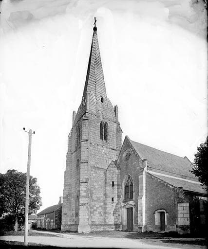 Clocher du 15e siècle, qui présente la disposition assez particulière de l'amortissement de sa flèche octogonale à sa partie inférieure.