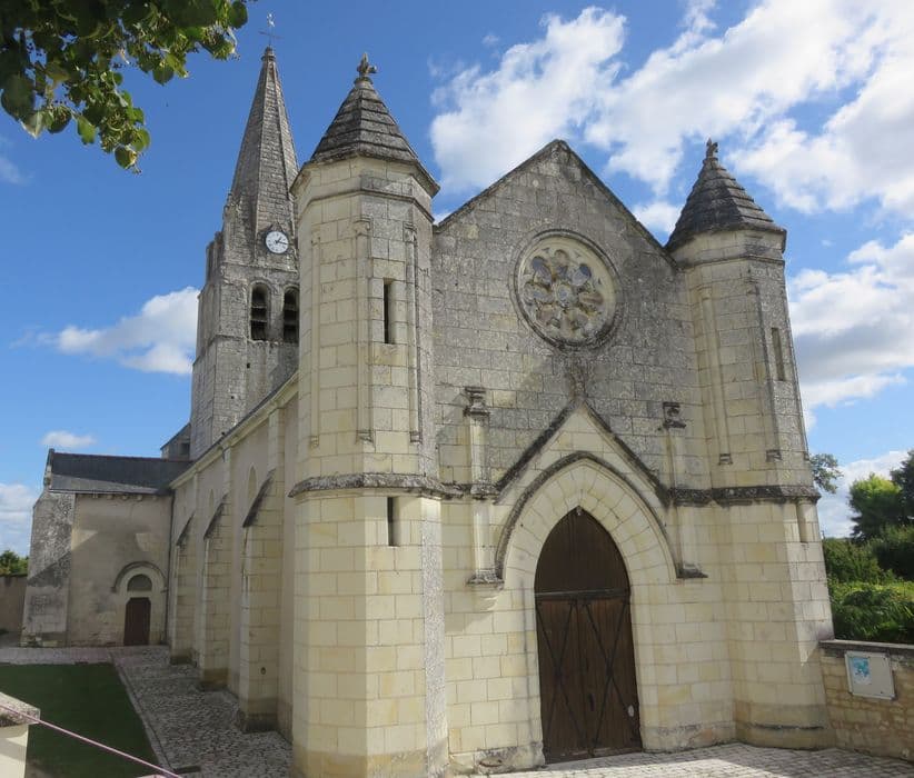 Eglise ayant appartenu à l'abbaye de Cormery selon une bulle de 1180. La nef, détruite par un incendie en 1876, a été reconstruite. A la suite de la nef moderne, le transept a sa croisée voûtée d'une coupole sur trompes. Les croisillons sont accompagnés chacun d'une absidiole voûtée en cul de four. L'abside semi circulaire voûtée en cul de four termine l'église. Le clocher domine la croisée du transept et a été reconstruit en partie au 15e siècle.