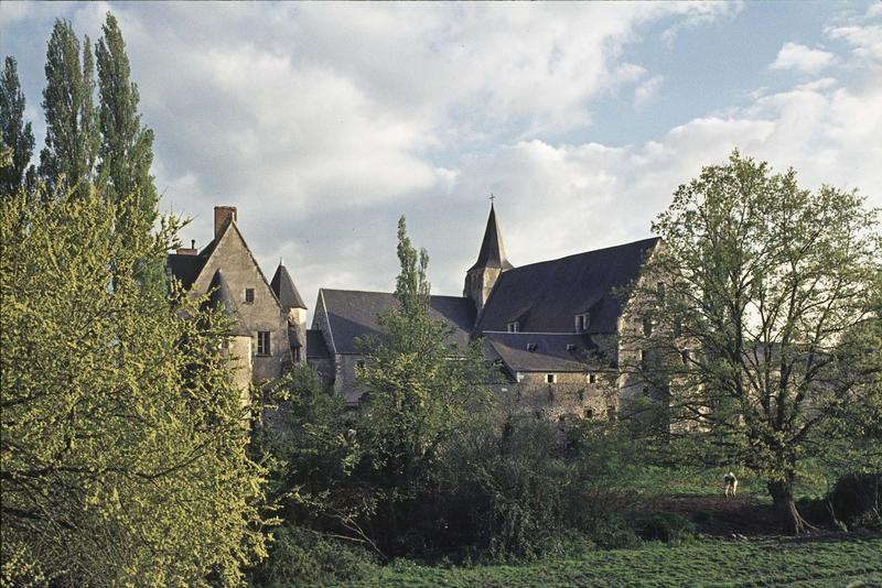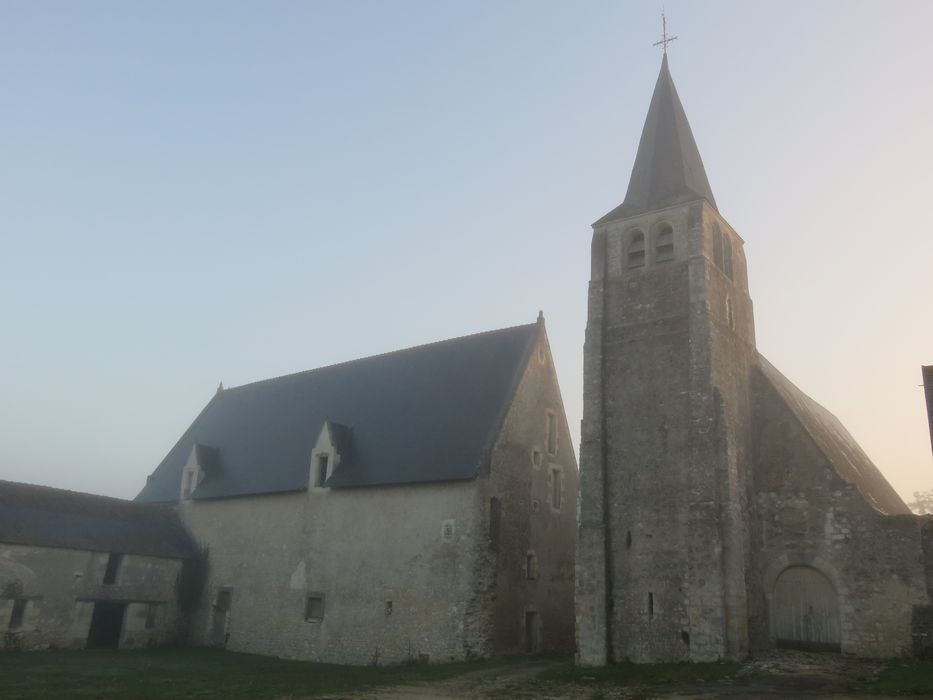 Le château fut fondé en 1228 par Hugues des Roches, abbé de Marmoutier. Il était fortifié et entouré de douves. A l'intérieur de l'enceinte se trouve l'église, ancien bénéfice de l'église de Marmoutier qui la tenait d'un don fait par Archambault, archevêque de Tours en 991. La partie la plus ancienne de l'édifice date de l'époque romane, de même que la tour beffroi qui la précède. La voûte en charpente est plus tardive, tirants et poinçons étant gothiques. Au 17e siècle, le chevet plat a été prolongé d'une abside à fond plat, plus étroite que l'église, couverte d'une voûte de pierre en anse de panier.