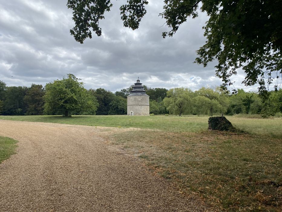 Autrefois construit au milieu des communs, le pigeonnier des Belles Ruries en est le seul vestige et fait aujourd'hui face au château reconstruit à la fin du 19e siècle. Construit en 1611 (date gravée au-dessus de la porte) , il adopte une forme circulaire coiffée d'une imposante toiture à quatre niveaux superposés et surmontés d'un lanternon. Les trois derniers niveaux, ajourés pour le passage des pigeons sont de forme hexagonale. L'intérieur comporte 1200 trous de boulins accessibles par deux échelles tournantes.