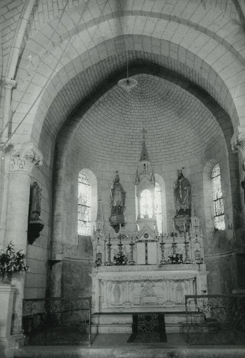 De l'église romane primitive ne subsistent que l'abside ronde et le choeur, ainsi que la partie inférieure de la tour carrée du clocher qui repose sur la croisée du transept. Son couronnement actuel date du milieu du 18e siècle. Les bas-côtés sont formés, au nord et au sud, de quatre chapelles contigües et perpendiculaires à la nef, chacune éclairée par une fenêtre flamboyante. L'édifice a été très restauré de 1850 à 1888. La façade de 1862 précède une nef, couverte d'une voûte de brique en 1850. Le collatéral sud date du 16e siècle ; celui du nord fut ajouté en 1862.