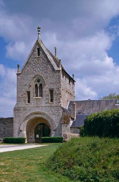 Cette ferme dépendait autrefois de l'abbaye de Marmoutier, construite au début du 13e siècle. Elle est un exemple très intéressant d'exploitation agricole du Moyen-Age. Elle présente vers l'ouest une grande porte élevée sur plan carré et traversée au rez-de-chaussée par un large passage voûté. Au-dessus, le premier étage contenait une vaste salle avec charpente lambrissée. Au nord subsiste une partie de l'ancienne enceinte, simple mur en maçonnerie de moellons, renforcé à l'extérieur par des contreforts. La grange s'élève dans la partie Est de l'enceinte. C'est une vaste construction basse et allongée, limitée sur les petits côtés par des murs pignons. Une large porte en plein cintre surmontée d'un gâble élancé conduit à l'intérieur, divisé en cinq nefs de treize travées par quatre rangées de poteaux. Ces divisions portent la charpente du comble et, accolés aux murs latéraux, deux autres séries de supports reçoivent les sablières. Cette charpente est une réfection du 15e siècle. L'édifice a en effet été dévasté à la fin du 14e siècle par les Anglais, avant d'être remis en état au siècle suivant.