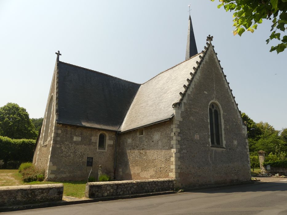 L'église se compose d'une nef unique terminée par un chevet plat, coupée par un transept, le tout couvert par une charpente lambrissée. Les entraits octogonaux montrent à leurs assemblages avec les sablières et les poinçons des renforts en forme de gueules d'animaux fantastiques ou de figures humaines. Le clocher de charpente a été installé sur la deuxième travée de la nef. Ses quatre poteaux d'angle inclinés reposent sur les extrémités d'entraits des fermes courantes, ces entraits étant soulagés sous cet assemblage par des corbeaux de pierre portés par des pilastres engagés dans les murs de la nef. Le clocher se compose d'un campanile sur plan carré à la base, terminé par une flèche octogonale élancée. Les parois de la nef, du transept et du choeur sont ornés de trente écussons en bas-relief sur plaques rectangulaires. Une peinture murale a été découverte sous l'enduit à faux joints.