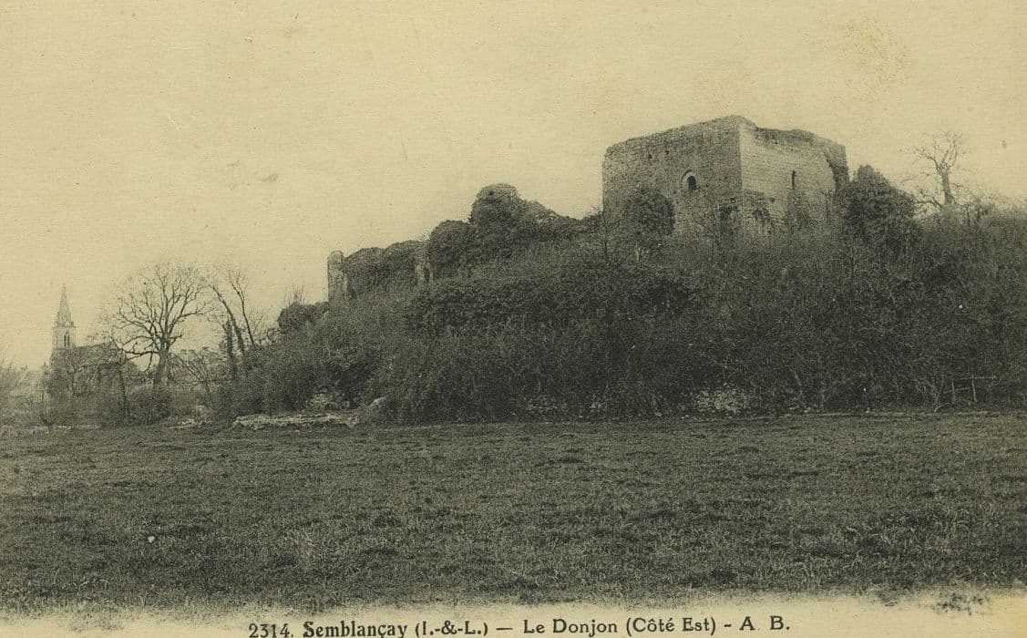 A la fin du 10e siècle, Foulques Nerra fit élever un donjon de bois. Au 12e siècle fut bâti un donjon carré dont la protection fut accrue par une large tranchée, isolant le rocher de base qui fut alors complètement entouré par l'étang. Au 14e siècle, le donjon fut renforcé par une double enceinte dont l'accès devait se faire par un pont en bois fortifié. Au début du 16e siècle, Jacques de Beaune fit réparer les enceintes et le pont, et élever des bâtiments entre le donjon et la deuxième enceinte. Il bâtit un logis seigneurial et une chapelle à l'est de l'étang.£La première enceinte pentagonale est flanquée de quatre tours rondes et d'un bastion. L'accès se faisait par le pont de la courtine nord, la seule subsistante. La seconde enceinte épouse les formes du rocher et est flanquée de cinq tours dont restent celles du nord et du sud. Celle de l'ouest fut remplacée par un gros contrefort sans doute au début du 16e siècle. Des logis ne subsistent que des pans de murs. Du donjon carré subsistent le rez-de-chausssée et le premier étage.