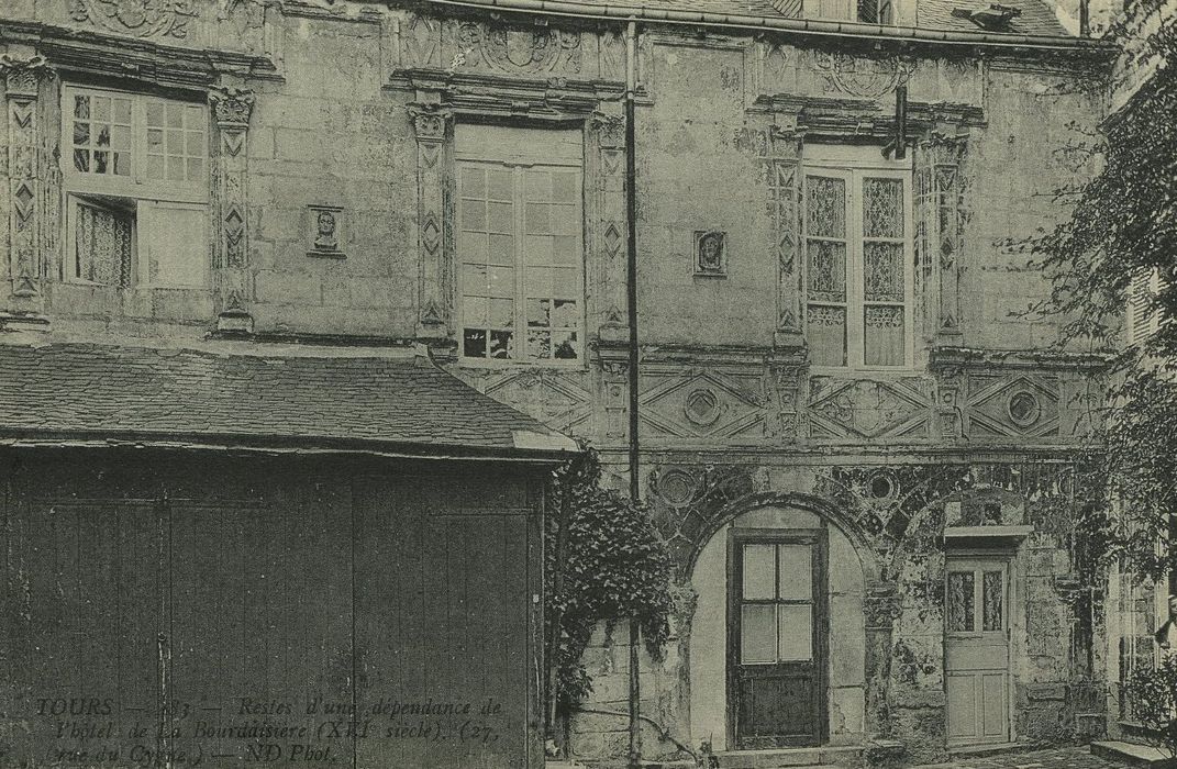 L'édifice conserve des parties du 15e et du 16e siècle, dont une tourelle gothique et une galerie murée au décor de pilastres, de cartouches et de cariatides. Cette façade est un bon exemple d'architecture civile Renaissance. Cette maison est une ancienne dépendance de l'hôtel de la Bourdaisière.