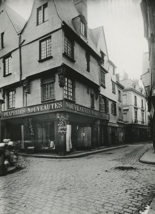 L'ensemble des maisons de la rue est intéressant par lui-même. Cette maison faisant l'angle est en bois dont le hourdis a été remplacé par une maçonnerie de brique.