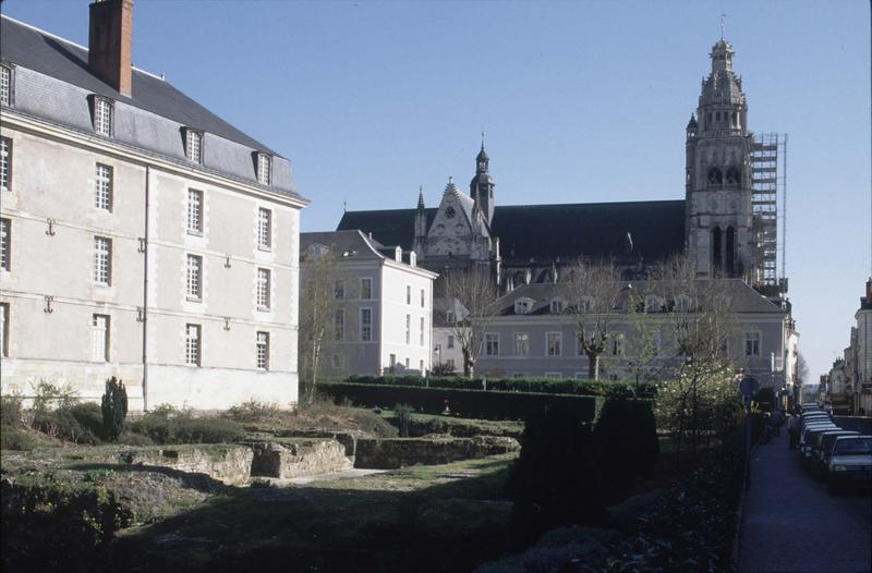 Les tours féodales flanquaient les angles d'un château bâti par Henri II Plantagenêt en 1160. Les tours nord et sud datent du troisième quart du 12e siècle, tandis que l'ancien palais est des 16e et 18e siècles. Le bâtiment nord, du 16e siècle, était l'ancienne habitation des gouverneurs de Tours. Le bâtiment ouest, du 18e siècle, bâti entre les deux tours, devait lui servir d'annexe.